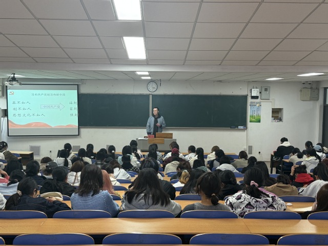 薛老师以“坚定理想信念,争做时代先锋”为主题,从“认识中国共产党”“读懂党的初心使命”“青年如何向党组织靠拢”三个板块展开。他带领同学们回顾百年党史中的关键场景,剖析“入党动机”的本质,强调“入党不是加分项,而是人生项”,他呼吁新生们要将个人理想融入国家发展,让青春在民族复兴赛道上绽放光芒。