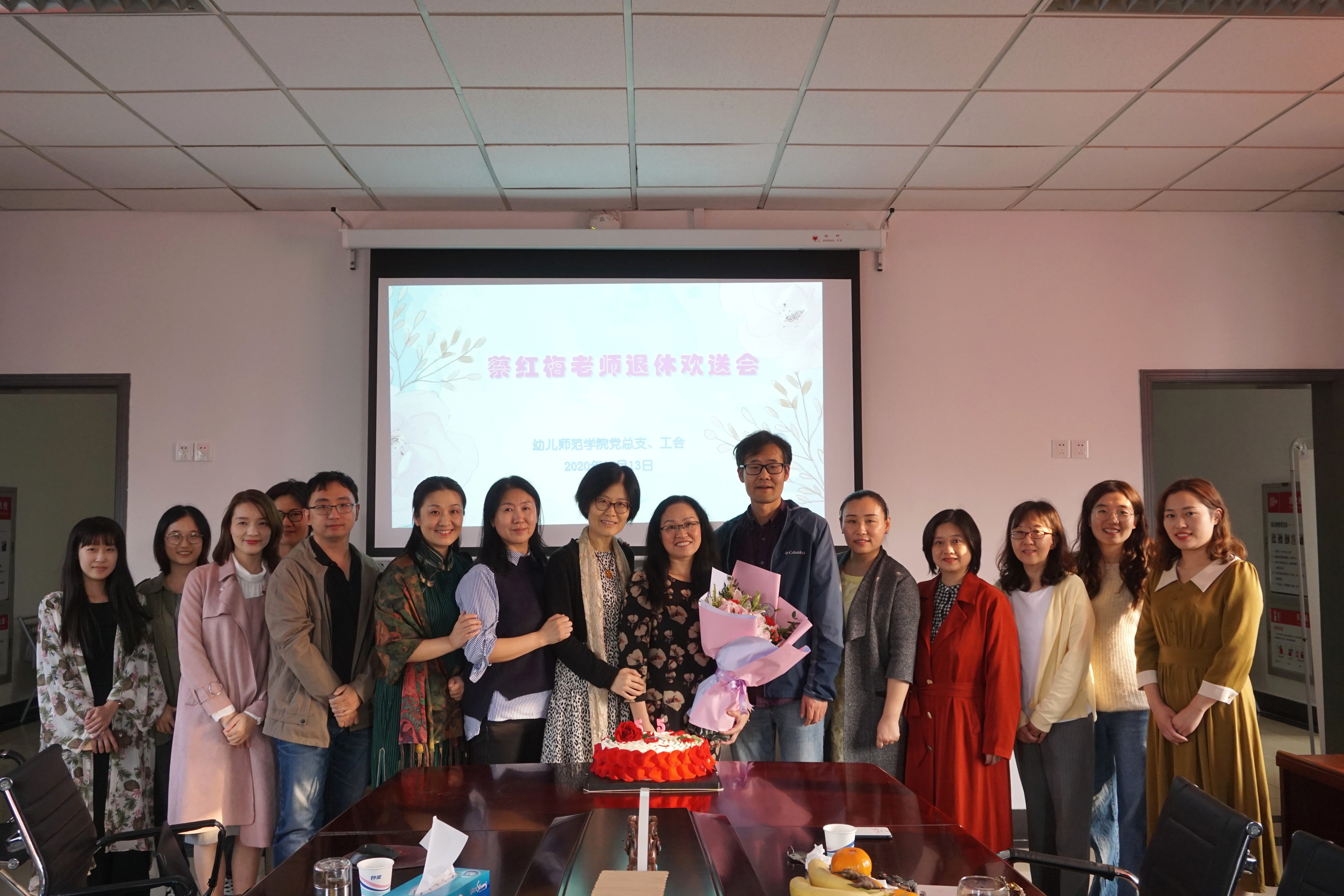 会上,学院党政领导、工会主席高度评价了蔡老师的敬业精神、师德情操和教学水平,并希望蔡老师退休后继续发挥余热,关心支持学院的教学工作。蔡老师的学生们制作了记录蔡老师工作场景的电子相册并送上了暖心的感谢和祝福。老师们纷纷回忆了与蔡老师多年共事的感人故事,对蔡老师高尚品格和谦和为人深深钦佩,表达了对蔡老师的深厚情感和浓浓祝福。接着,现场老师们为蔡老师举行了生日会,祝福蔡老师55周岁生日快乐、健康幸福!最后,蔡老师回顾了自己的30多年的工作历程,表达了对幼儿师范学院的感谢和美好的祝福。