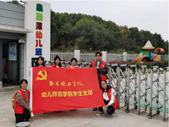 为践行陶行知乡村教育思想,发挥学前教育师范生专业优势,支持农村幼儿园课程建设,11月17日,我院学生党支部组织党员志愿者和乡村定向班学生代表,与指导教师钟芳芳老师一同前往溧水区石湫镇桑园蒲幼儿班,开展“农村幼儿园社会主义核心价值观教育实践”主题党日活动。