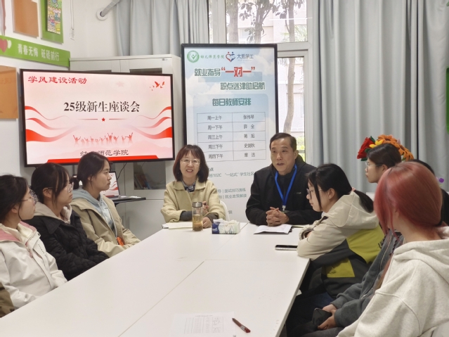 近日,幼儿师范学院关工委走进“一站式”学生社区,与25级新生共话成长。学院党委书记、关工委主任胡辰,原副院长、关工委孙幼红老师,辅导员老师与2025级新生代表围坐一堂,聚焦新生适应与专业成长,开展了一场深入的心灵对话。