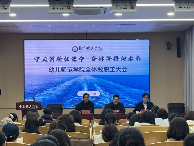 张校长在会议上发表重要讲话,他对学院过去一年取得的成绩给予充分肯定,并对全体教职工提出要求:一是立足岗位、干好本职,要把职业当作事业来干,把立德树人作为教育教学的根本任务,高度重视并积极参与学校深化改革绩效考核工作;二是聚焦重点、守好师德,重点排查师德师风风险问题,学校学院要针对全体教师开展谈心谈话工作;三是珍惜晓庄、树好形象,要共同维护好学校声誉,以积极向上的精神面貌和务实丰硕的工作成果迎接百年校庆!