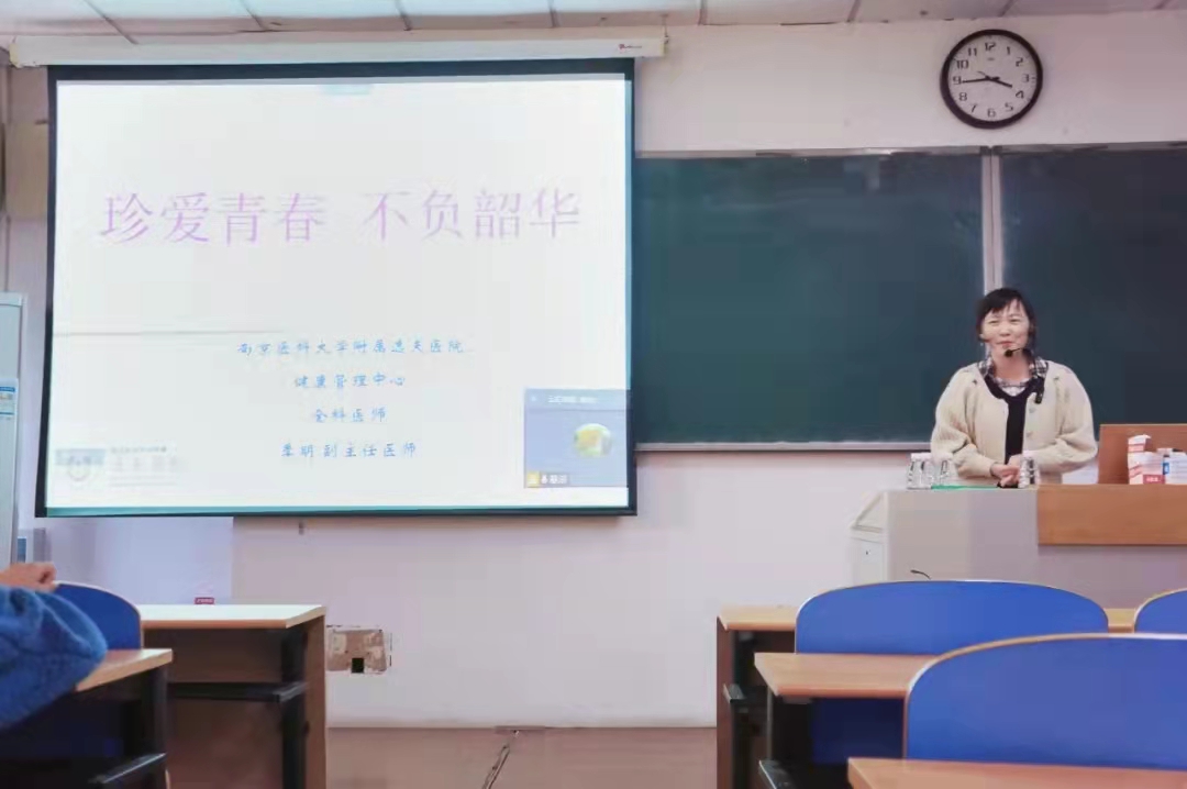 为帮助大学新生了解生理健康保健知识,增强防范和自我保护意识,帮助大学生树立“自尊、自爱、自律”的健康生活理念,11月16日下午,幼儿师范学院、音乐学院在行知组团B111联合开展了主题为“真爱青春 不负韶华”大学生生理健康教育讲座,讲座采取线上和线下相结合的方式,2021级新生参加,本次讲座由章洁老师主持。主讲人是南京医科大学附属逸夫医院健康管理中心全科副主任医师季明。