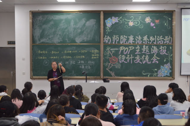 10日晚,我院2018年“廉洁”主题系列活动之POP主题海报设计交流会在北讲教室顺利举行。交流会邀请了我院专业美术老师丁华为大家做指导培训。